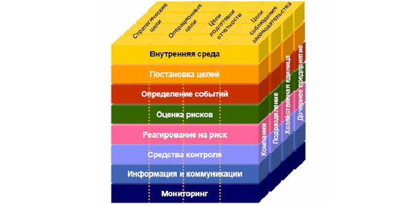 Стандартная иллюстрация концепции и модели COSO – так называемый «Магический куб COSO»: