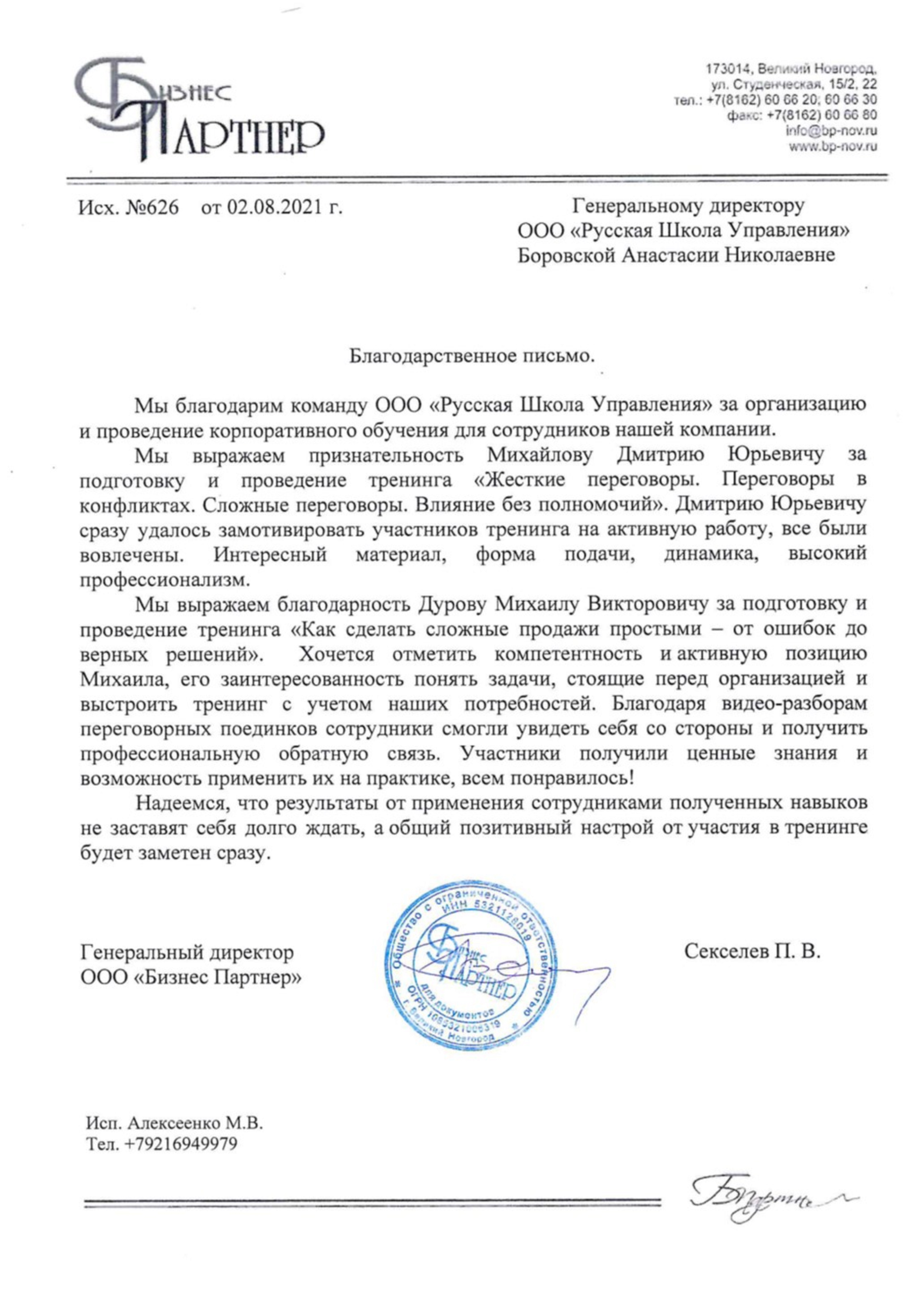 “Обучение на тему управления персоналом было полезным и информативным. Оно помогло нам лучше понять сложности, связанные с взаимодействием с людьми в организациях, и предоставило практические инструменты для управления командами.”